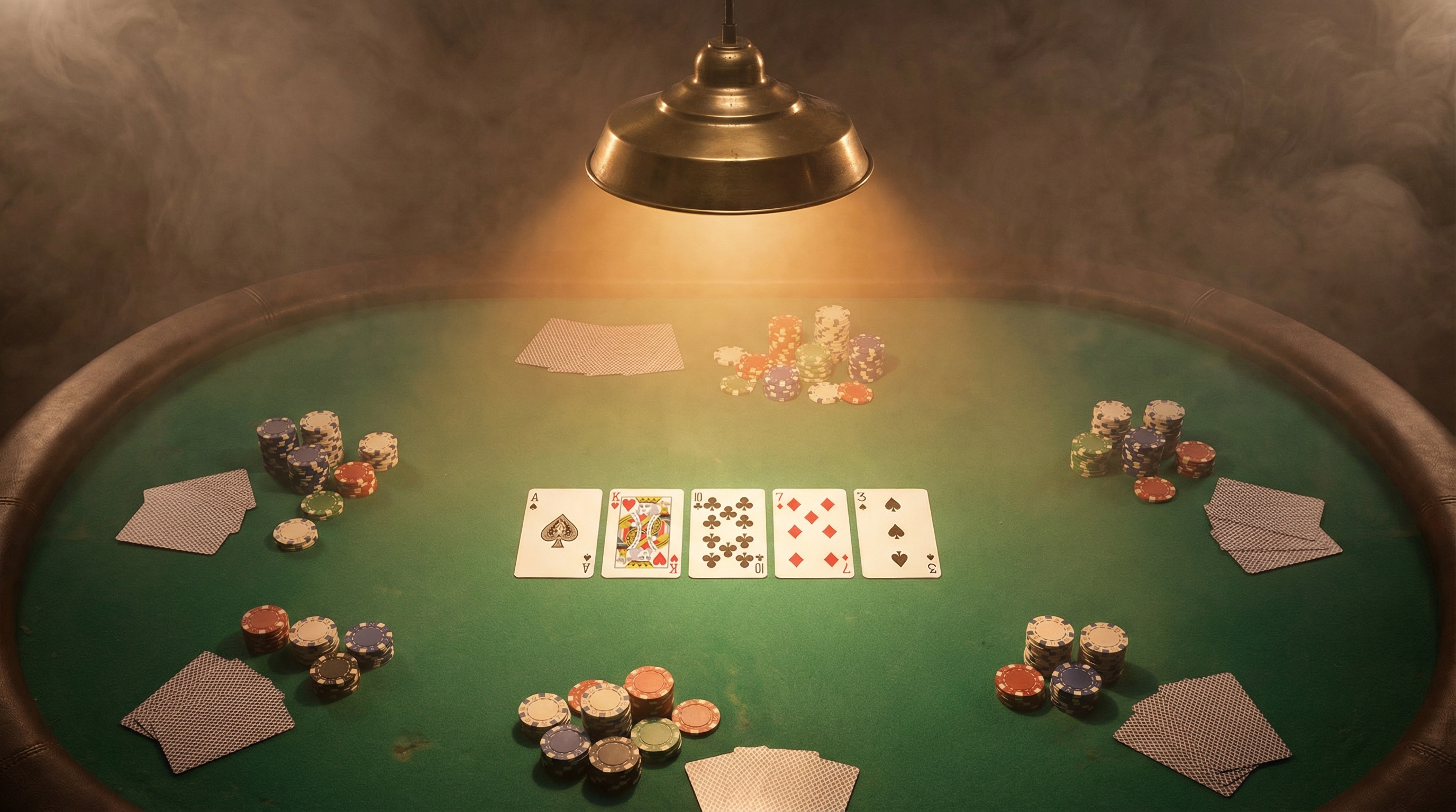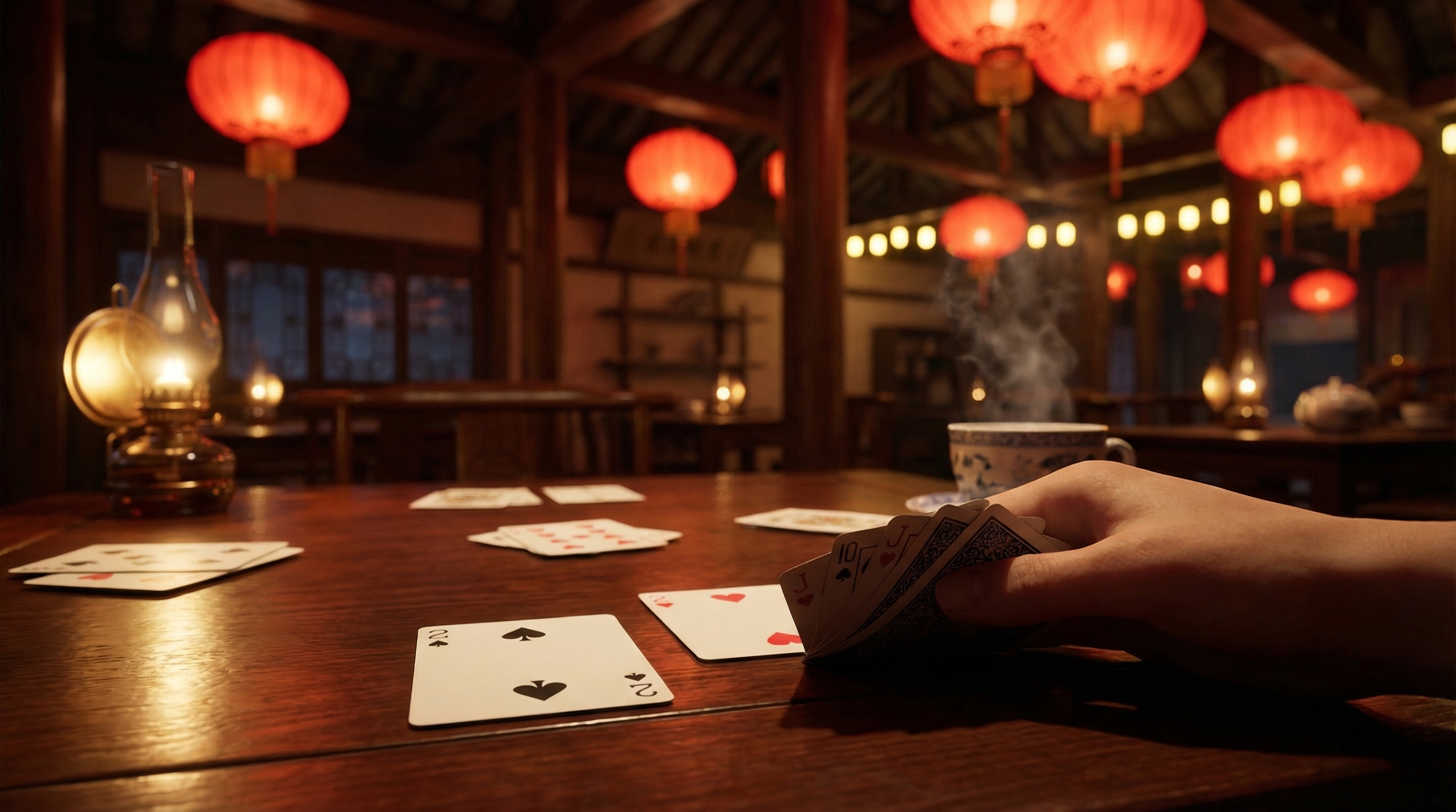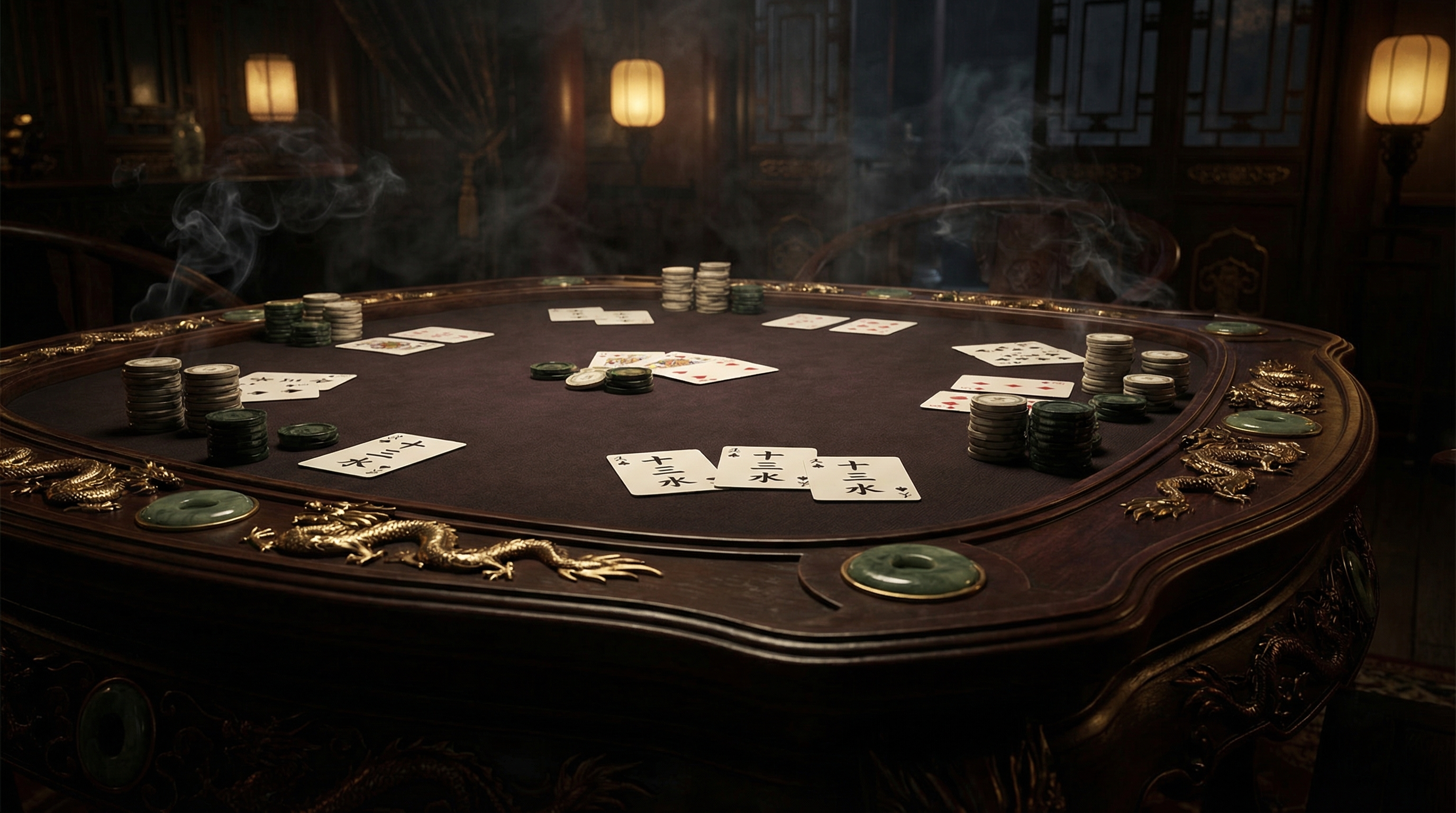 Arrange 13 cards into front (3), middle (5), and back (5) hands. Compete pairwise against all opponents.